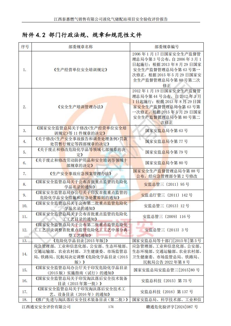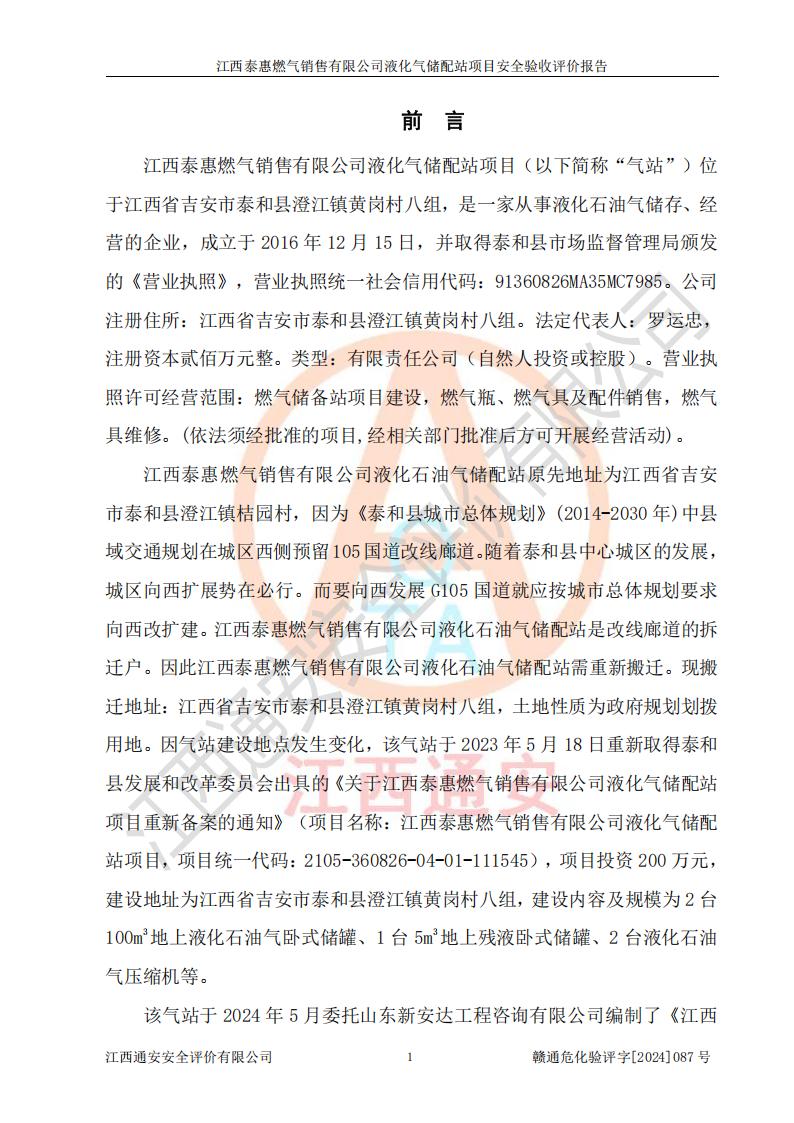項目名稱 | 江西泰惠燃氣銷售有限公司液化氣儲配站項目安全驗收評價報告 | ||||