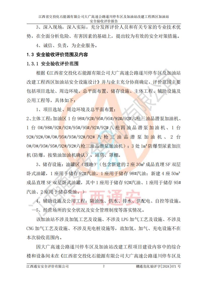 評價報告名稱 | 江西省交投化石能源有限公司大廣高速公路遂川停車區(qū)及加油站改建工程西區(qū)加油站安全驗收評價報告 | |||