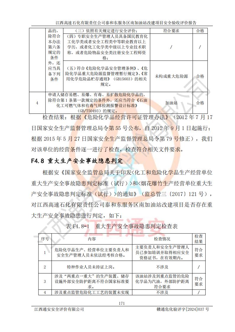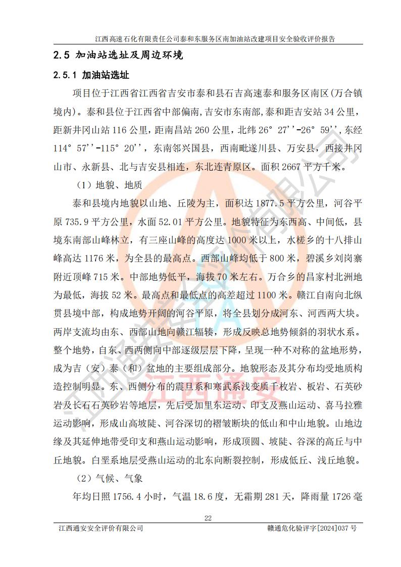 項(xiàng)目名稱 | 江西高速石化有限責(zé)任公司泰和東服務(wù)區(qū)南加油站改建項(xiàng)目安全驗(yàn)收評(píng)價(jià)報(bào)告 | ||||