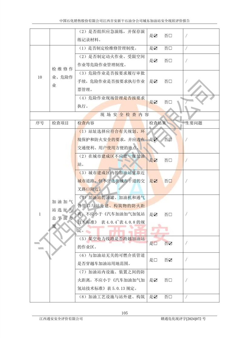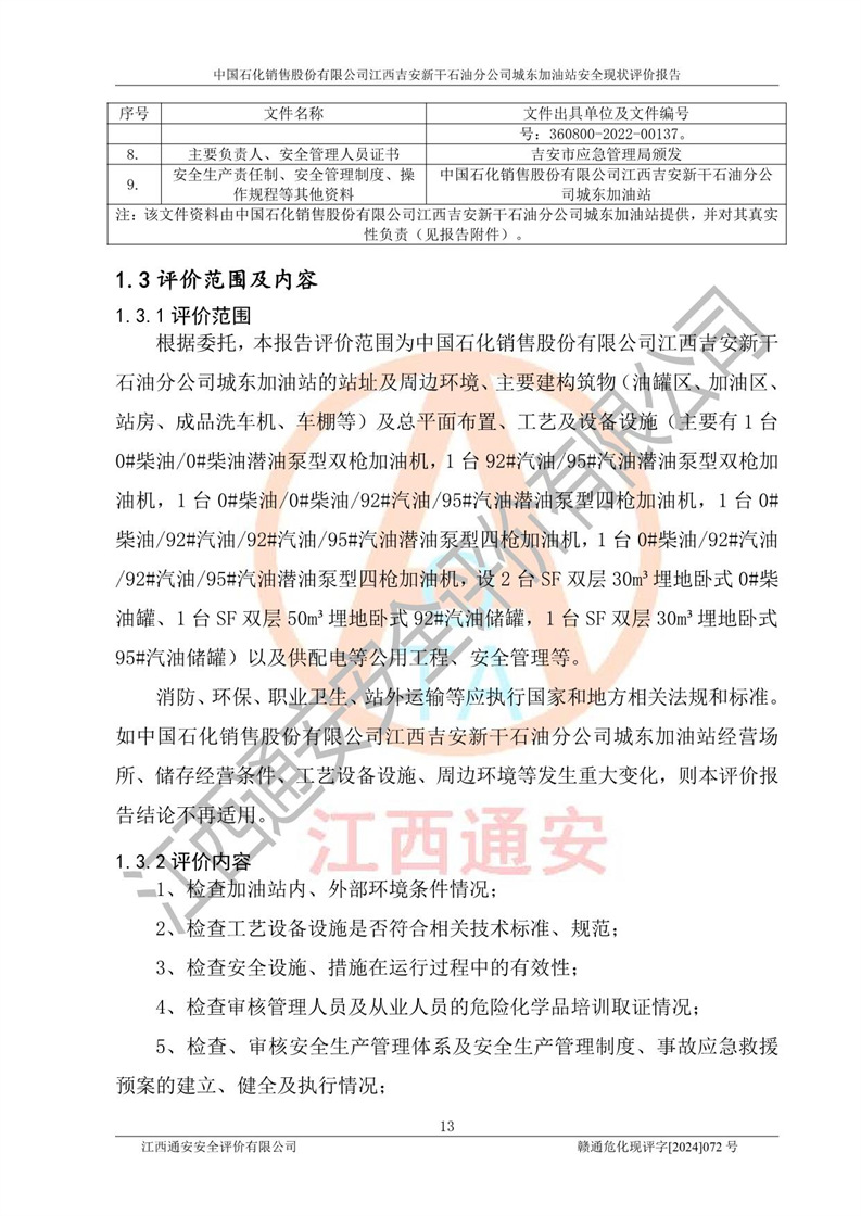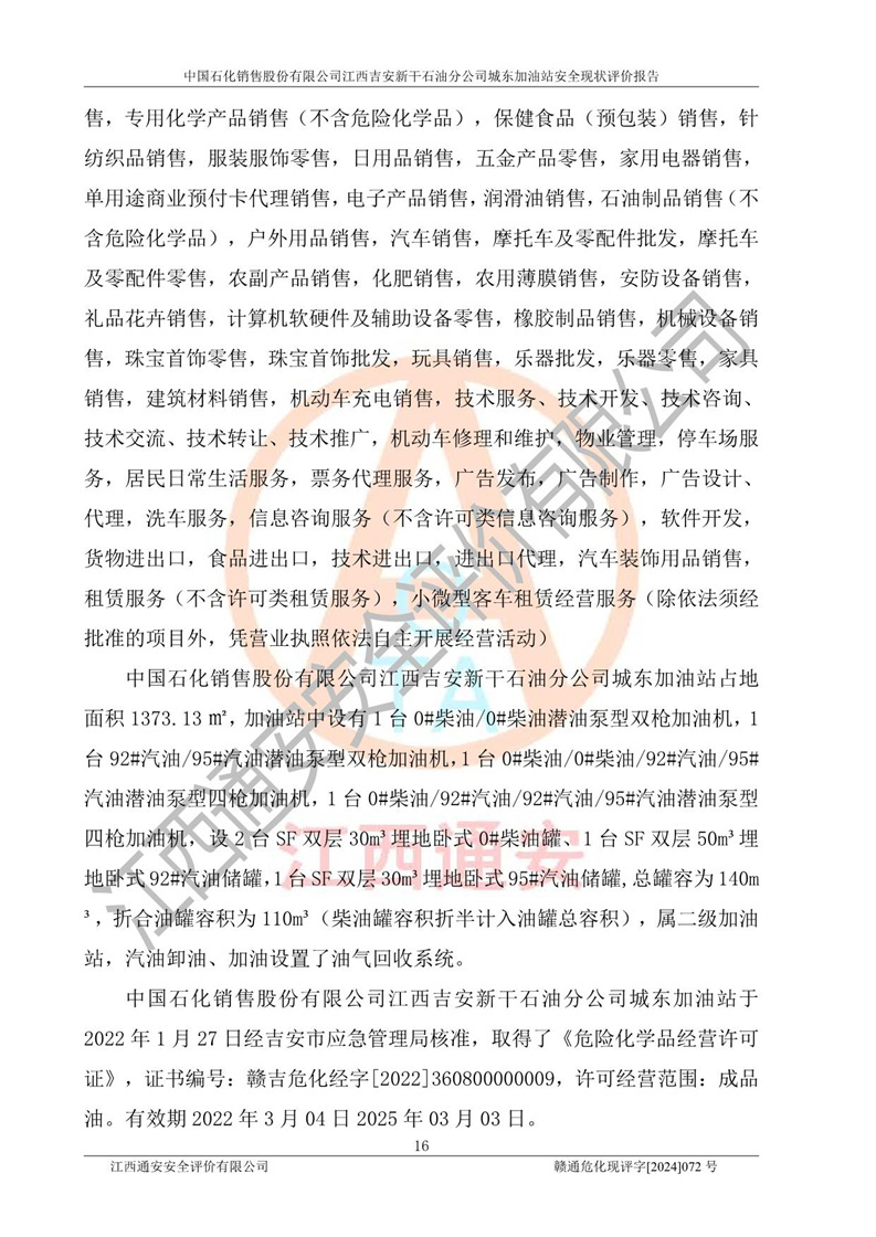 評價報告名稱 | 中國石化銷售股份有限公司江西吉安新干石油分公司城東加油站安全現(xiàn)狀評價報告 | |||